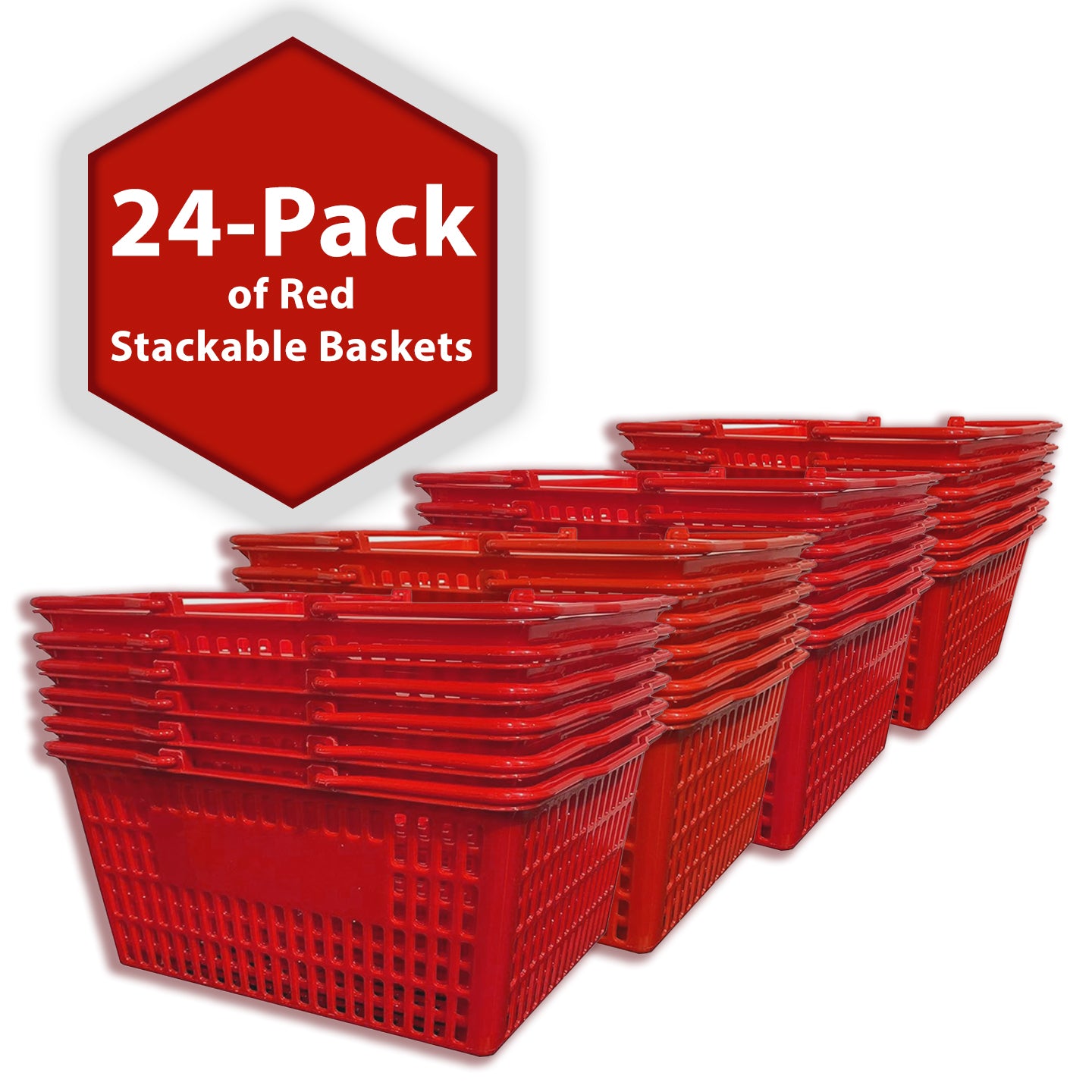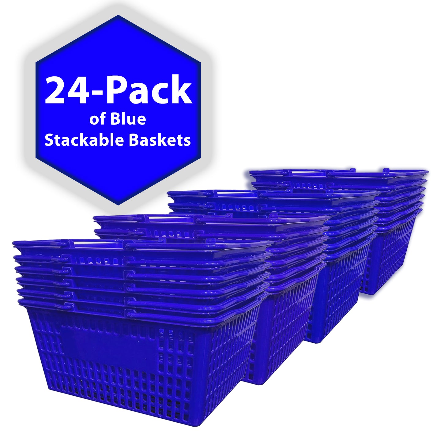 - Versatile Set: Includes stackable plastic baskets - 3 great color options available, perfect for grocery shopping, retail stores, liquor stores, or home organization.