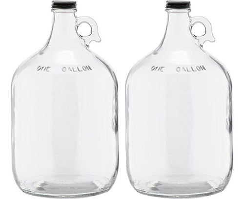 2pk Gallon (128 oz) Clear Glass Jug With 38mm Black Polyseal Lid & Cap